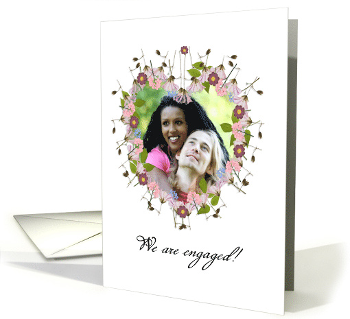 This card is a template. Insert your photo and text on the front and this card becomes a unique "invitation engagement party" card. This fresh card features a heart frame made with flowers. You can edit text inside yourself.