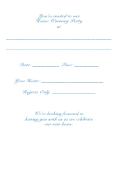 Housewarming invitation with teal colored drapes and window pane and bouquet of flowers