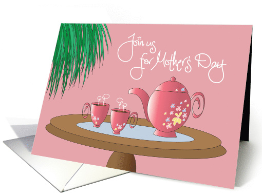Mother's Day Party Invitation Floral Tea Set on Bistro Table and Fern