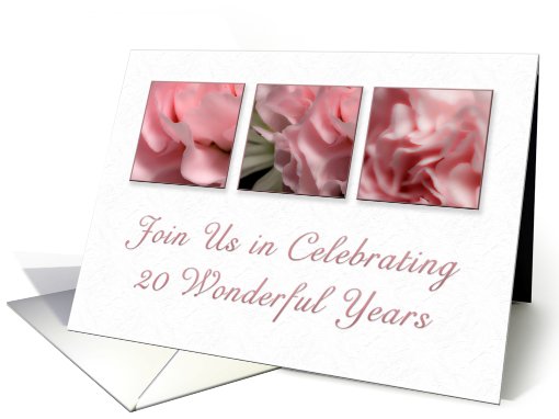 Join Us in Celebrating 20 Wonderful Years, Wedding Anniversary Invitation, Pink Flower on White Background