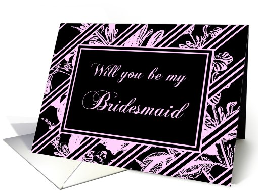 Pink And Black Stripes Will you be my Bridesmaid Card