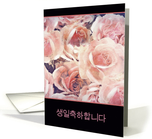 Translation: "Happy Birthday" (formal) in Korean. This elegant birthday card features delicate pink and cream roses. You can edit text inside card. Custom requests welcome.
