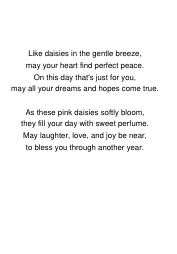 A floral birthday card for your mom. This elegant birthday card showcases a delicate scattering of soft pink daisies, symbolizing beauty, grace, and joy. The light and airy floral design brings a touch of nature’s charm, perfect for celebrating a special day with warmth and love. The cheerful flowers evoke feelings of happiness and renewal, making it an ideal choice for sending heartfelt birthday wishes.