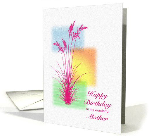 A birthday card with style to give to your mother. Wish a happy birthday with a card she will love. pink grasses stand against a stylized landscape background. A simple card to carry your best wishes.