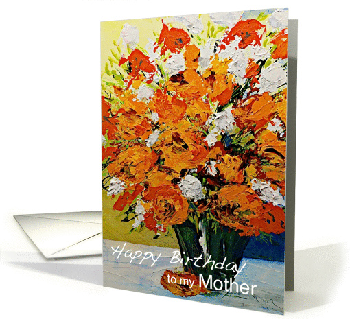 Red,White,Orange Flowers in a Vase - Happy Birthday Mother