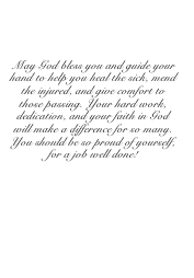 May God bless you and guide your hand to help you heal the sick, mend the injured, and give comfort to those passing. Your hard work, dedication, and your faith in God will make a difference for so many. You should be so proud of yourself, for a job well done!