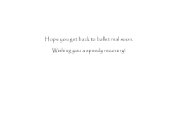 If you know of someone with a ballet injury, this card will fit! The cover features a cute cartoon panda ballet dancer, stars, bubbles, and a headline in pink.There's room for the name underneath the headline. The inside message may be changed, if you wish. ©Gail Pepin