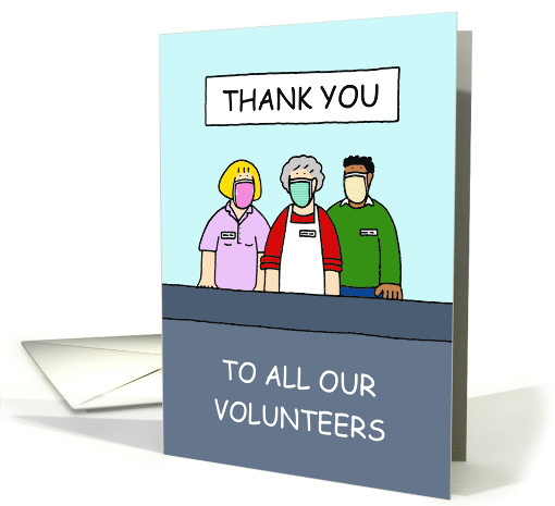 A cartoon of a group of three volunteers of different ages and ethnicity wearing face masks. The image is accompanied by the words 'Thank you to all our volunteers.