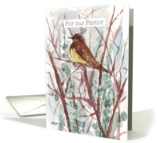 Happy Birthday Pastor Bird Trees Watercolor