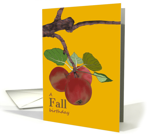 Celebrating a fall birthday. This sketch shows lovely red apples on a branch, set against a dark yellow background.