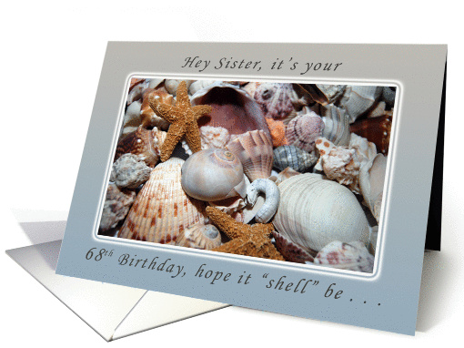A collection of beautiful sea shells and starfish make for a beautiful birthday card that your sister is sure to enjoy on her 68th Birthday.