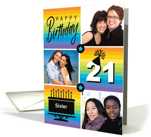 Rainbow stripes with corner stars accent 3 of your favorite photos for your favorite sister's 21st birthday . İMindy Pierce