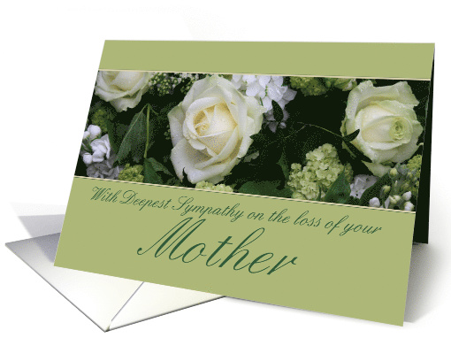 On the loss of your mother. Elegant but simple bouquet of white roses to express your deepest feelings of sorrow. Created by Studio Porto Sabbia and available in other versions as a sympathy card on the loss of other family members