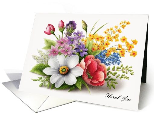 Show gratitude to someone very important to you with this beautiful "Thank You" card showing a colorful bunch of flowers.