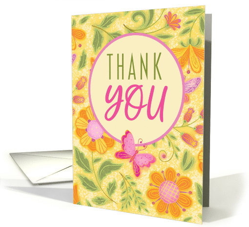 Thank You Yellow Wildflowers with Pink Butterflies