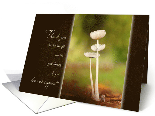 Do you want to thank someone for the way they've blessed you by their love and support during an illness? This beautiful card, with mushrooms growing together and clinging to one another, is a lovely way to say thanks!