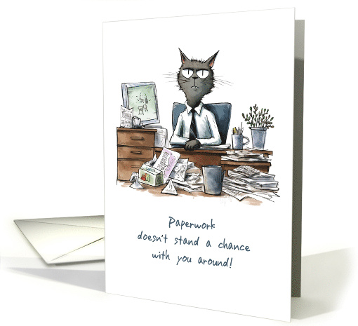 Show your appreciation with a humorous Volunteer Thank You card featuring a dapper hand-drawn male cat in a tie, seated at a desk buried under piles of papers, files, and a steaming cup of coffee. This lighthearted design captures the funny side of office chaos while honoring the dedication of volunteers who help keep everything running smoothly. Paired with a witty front message and a warm inside sentiment, it’s a cheerful way to say thanks for the time, effort, and heart they give. A woman's version is also avaiiable. My original stores are AID# 133229 and 501680. Variation of PID 1904688 Tax Day Cat from https://www.creativefabrica.com/product/cute-and-funny-cat-clipart-bundle/ I added the plant and changed the coffee cup.