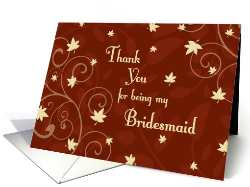 Thank You Bridesmaid Fall Wedding Card - Red Fall Leaves