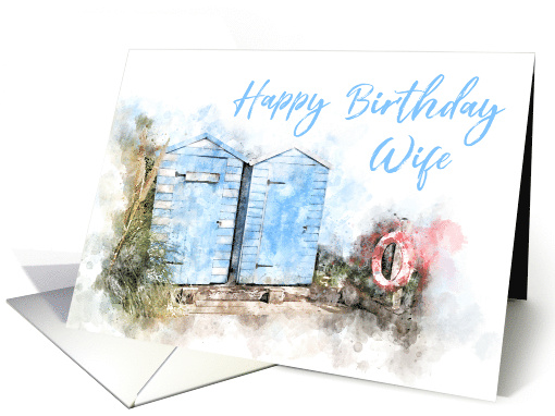 Happy Birthday Wife Beach Huts Watercolor