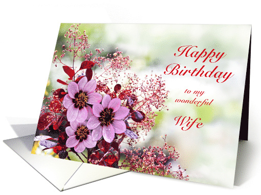 A wonderful birthday card for your wife. Pink hellebore flowers, also known as the christmas rose, set against a background of red leaves from the cotinus shrub.